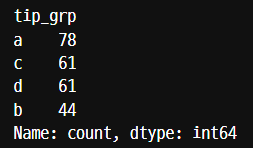 # 동일: tip['tip_grp'] = pd.cut(tip['tip'], 4, labels=list('abcd'))