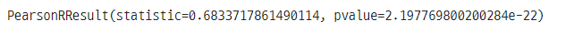 p-value를 보면, e-22이다. 이는 10의 -22승이다. 0이 22개나 있다는 의미이므로 엄청나게 작은 값임을 알 수 있다.
