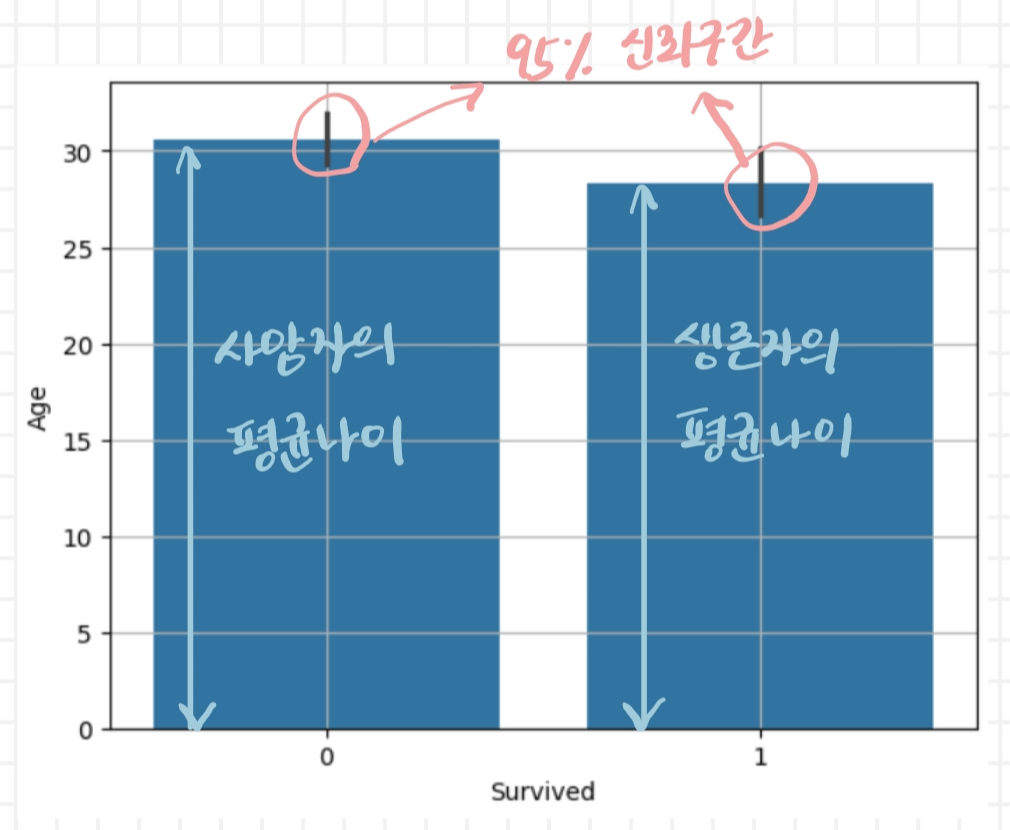 그래프 맨 뒤의 꼭지 부분은 신뢰구간(오차범위)를 가리킨다.
