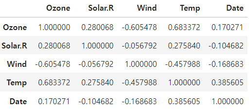 # 데이터프레임으로 부터 수치형 데이터에 대한 상관계수 구하기