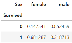 pd.crosstab(titanic['Survived'], titanic['Sex'], normalize = 'index')